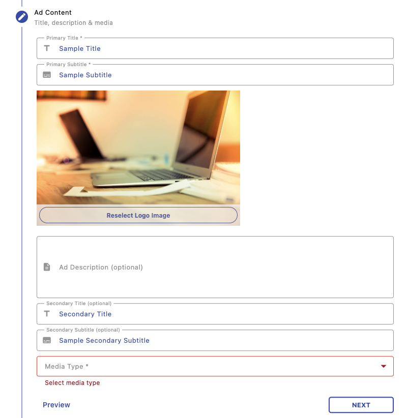 Add titles, subtitles, images, and descriptions for your ads. This is what users will see, so make sure your content is clear, engaging, and aligned with your campaign goal.