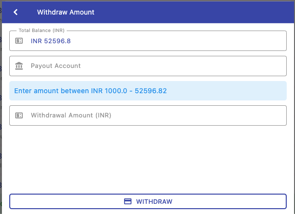 Withdraw available wallet balance to your configured payout account.